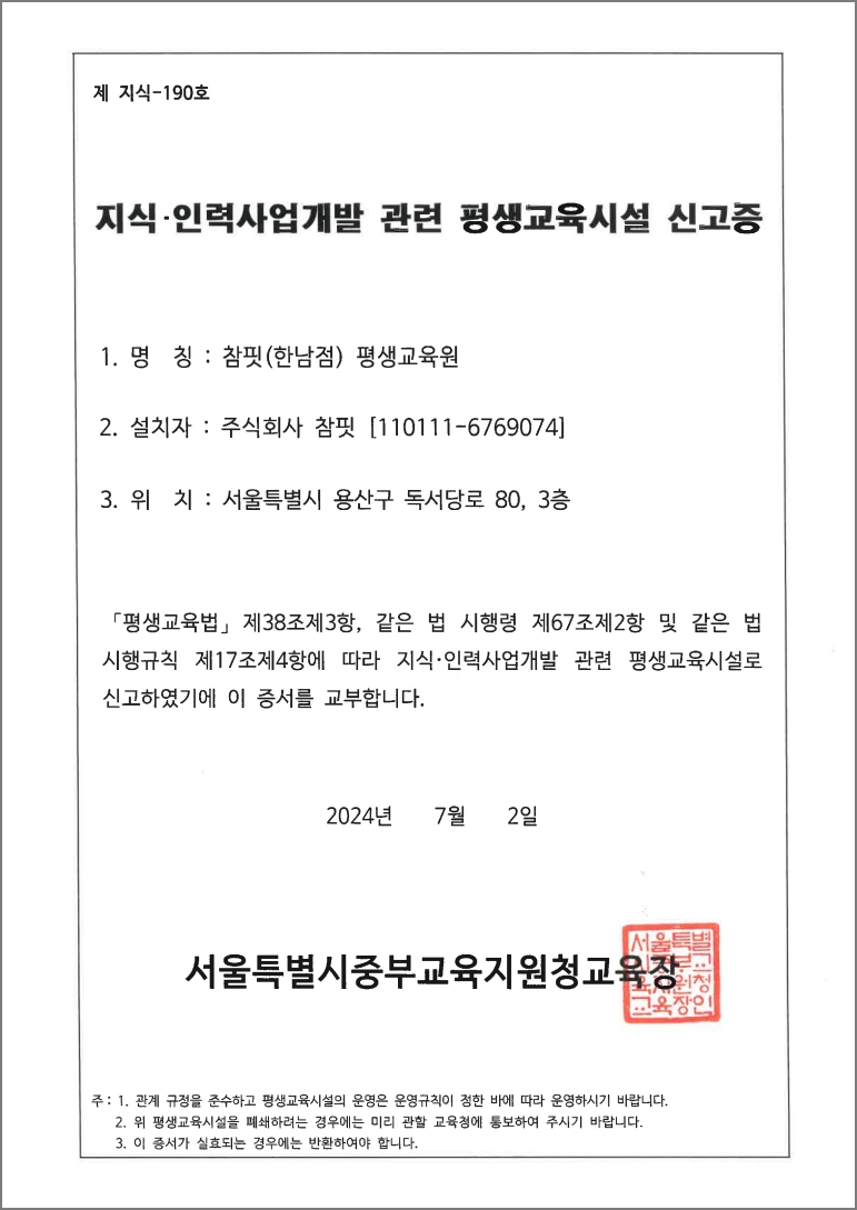 체계적인 공식 인증 교육 프로그램 및 자격 시스템을 구축하였습니다.